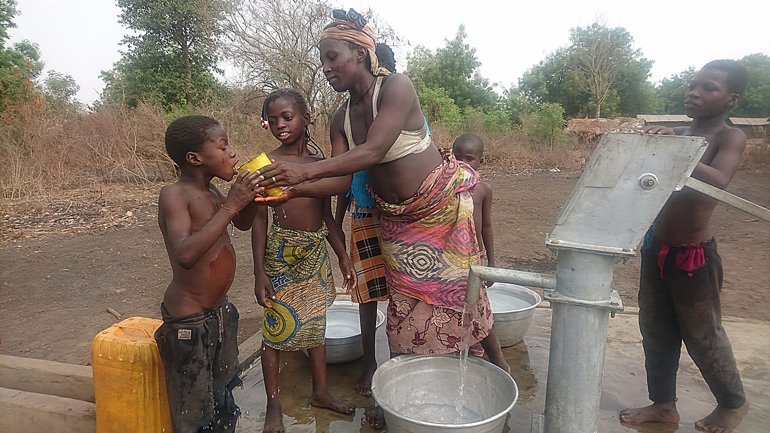Es gab kein Trinkwasser in Gobadas “Außenstelle” Awindji. Wasser wurde aus den schlammigen, grünen Gumpen des Flusses Zou geschöpft.