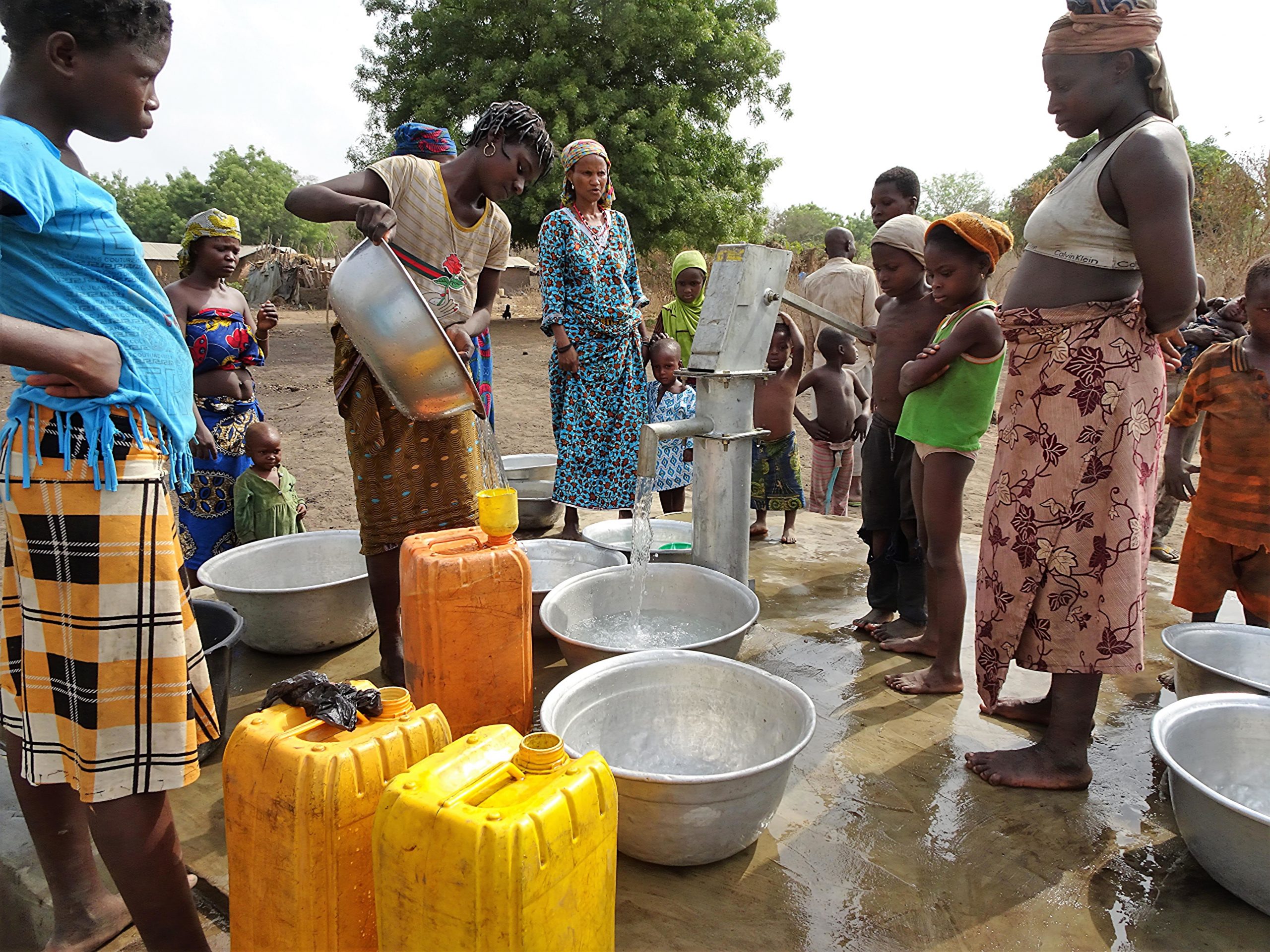 Am glücklichsten über die Wasserpumpe sind die Frauen. Sie erzählen wie beschwerlich es für eine Schwangere ist, eine Wasserschüssel (25-30 l) auf dem Kopf vom Fluss etwa 2,5 km den Abhang hinauf bis zum Dorf zu tragen und das bis zu drei Mal. „Vor der Realisierung dieser Pumpe mussten wir, wenn wir auf die Felder gingen, um 16 Uhr unsere Arbeit beenden. Wir gingen nach Hause und kümmerten uns ums Wasser bevor wir mit der Hausarbeit begannen. Die Pumpe im Dorf erlaubt uns den ganzen Tag auf unseren Feldern zu bleiben und wir können viel mehr schaffen. Diese Trinkwasserquelle ist das Schönste was wir uns vorstellen können. Gott sei gepriesen, auch adieu Guineawurm und adieu wasserbedingte Darmkrankheiten“.