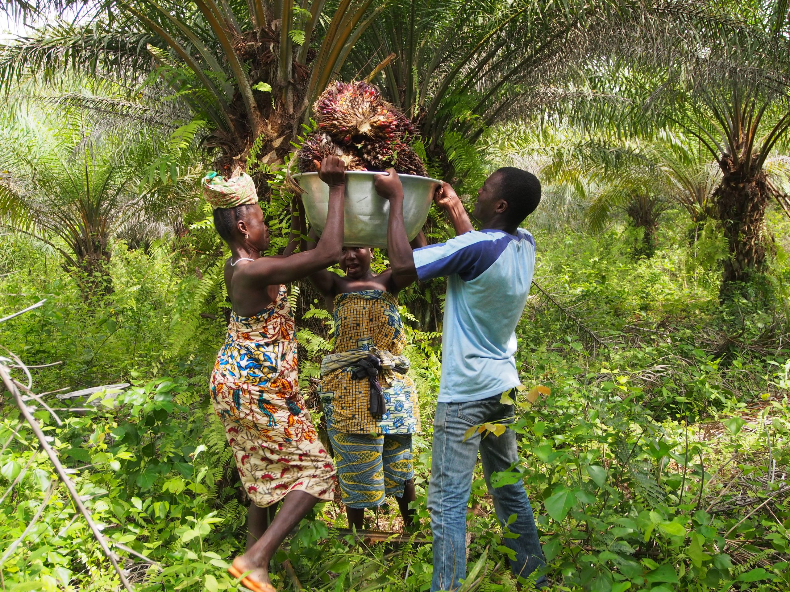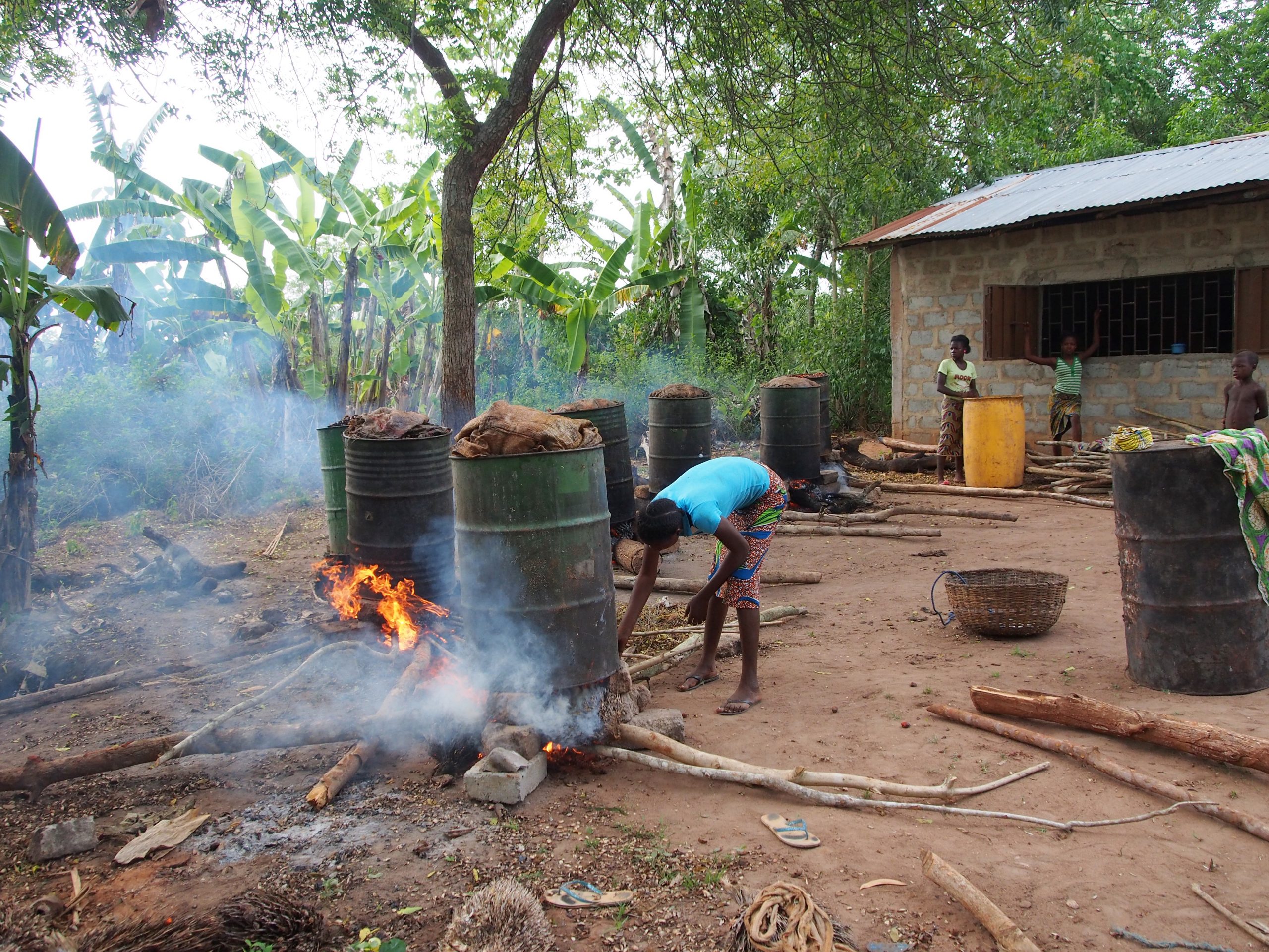 Die Plantage war 24 Hektar groß und gehörte dem Vater unseres Mitarbeiters Gabaki. Er erlaubte den Frauen höchstpersönlich, die Früchte zu ernten, zu verarbeiten und das gewonnene Öl zu verkaufen. Dafür sollten sie die Plantage pflegen.