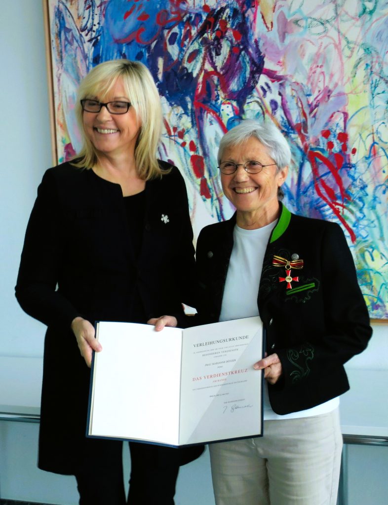 Bundesverdienstkreuz, Justizministerin Dr. Beate Merk (CSU) übergibt die Verleihungsurkunde (November 2015, s. Foto)